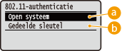 .![]() <Open systeem>Hiermee stelt u de verificatiemethode in op Open systeem, ook wel "open verificatie" genoemd.