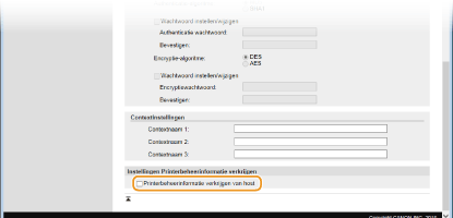 Klik op de [Authenticatie aan/encryptie aan] of [Authenticatie aan/encryptie uit] voor [Beveiligingsinstellingen] voor het algoritme dat overeenkomt met uw omgeving.