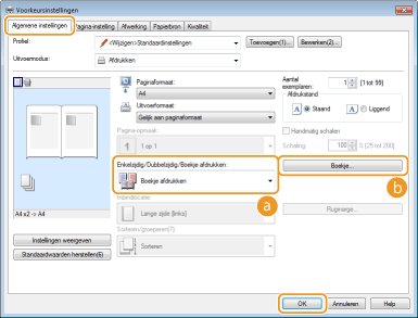Selecteer [Boekje afdrukken] in [Enkelzijdig/Dubbelzijdig/Boekje afdrukken]
