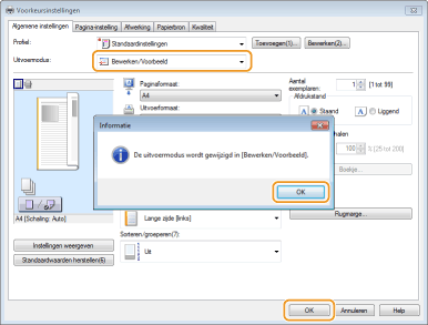 Selecteer [Bewerken/Voorbeeld] in [Uitvoermodus].