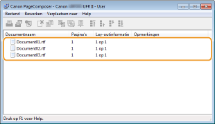 De documenten worden toegevoegd aan Canon PageComposer.