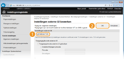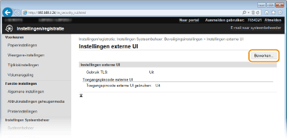 Klik op [Beveiligingsinstellingen]  [Instellingen externe UI].
