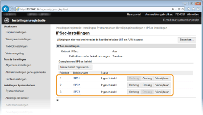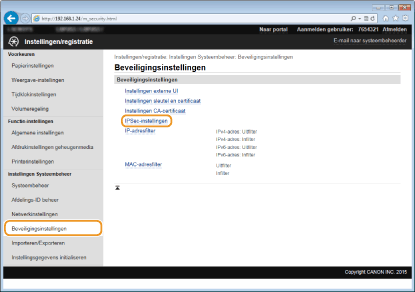 op het bedieningspaneel te drukken. Gebruik IPSec |