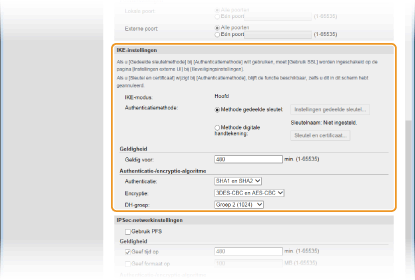 Geef instellingen op voor [Geldig voor] en [Authenticatie]/[Encryptie]/[DH-groep].