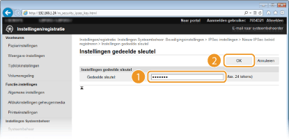 Typ maximaal 24 alfanumerieke tekens voor de gedeelde sleutel en klik op [OK].