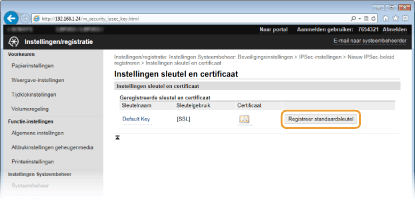 Klik op [Registreer standaardsleutel] naast het sleutelpaar dat u wilt gebruiken.