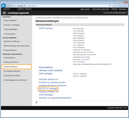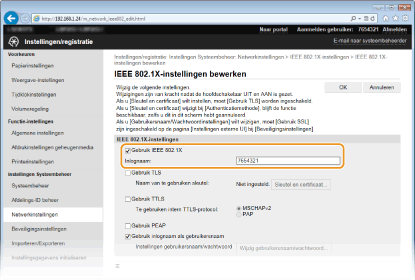op het bedieningspaneel in te drukken. IEEE 802.1X-instellingen |