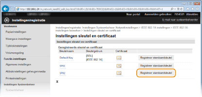 Klik op [Registreer standaardsleutel] naast het sleutelpaar dat u wilt gebruiken voor de client-verificatie.