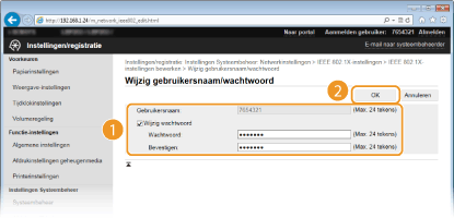 Gebruik maximaal 24 alfanumerieke tekens voor de gebruikersnaam. [Wijzig wachtwoord]