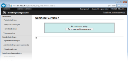 Klik op [Instellingen sleutel en certificaat] voor het verifiëren van een sleutelpaar, of [Instellingen CA-certificaat] voor het verifiëren van een CA-certificaat.