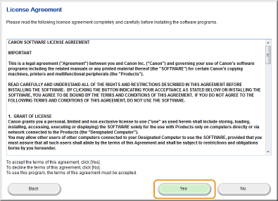 Leia o contrato de licença e clique em [Yes] para aceitar.
