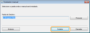 Selecione a pasta na qual pretende instalar o manual eletrónico e cliente em [Install] (Instalar).