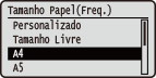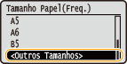 Se o ecrã mostrado acima não aparecer quando o papel é colocadoSe colocar sempre o mesmo papel no tabuleiro multifuncional, pode ignorar as operações de definição do papel registando o tamanho e o tipo do papel como predefinição. No entanto, o ecrã mostrado acima não aparece se registar a predefinição. Para aceder ao ecrã, selecione <Especificar ao Colocar Papel> (Registar predefinições de papel para o tabuleiro multifuncional).