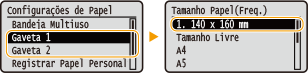 Quando pretender selecionar o tamanho do papel para a gaveta de papel