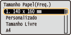 Ao selecionar o tamanho do papel para o tabuleiro multifuncional