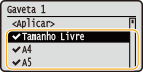 Para visualizar os tamanhos de papel cujas caixas de verificação não estão selecionadas, selecione <Outros Tam.> no ecrã de seleção de tamanho do papel.