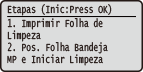 A limpeza é iniciada. Quando aparecer a mensagem <Terminado.> cerca de 1 minutos depois.