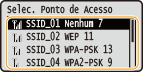 Se a ligação sem fios for configurada selecionando um router sem fios, o método de autenticação WEP é definido como <Abrir Sistema> ou o método de codificação WPA/WPA2 é definido como <Automático> (AES-CCMP ou TKIP). Se pretender selecionar <Chave Compartilhada> para autenticação WEP ou <AES-CCMP> para codificação WPA/WPA2, terá de configurar a ligação utilizando o método de introdução manual ( Configurar a ligação especificando definições detalhadas).