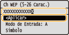 Introduza a chave de rede utilizando as teclas numéricas, selecione <Aplicar> e prima