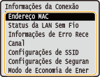 Pode imprimir uma lista com as definições de rede atuais. Lista de Dados de Utilizador/Lista de Dados de Administrador de Sistema