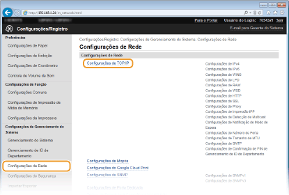 Selecione a caixa de verificação para obter informações relativas à máquina a partir de um computador através de WSD. Esta caixa de verificação é selecionada automaticamente quando é selecionada a caixa de verificação [Usar Impressão WSD]. [Usar Detecção de Multicast]