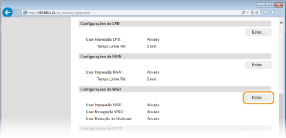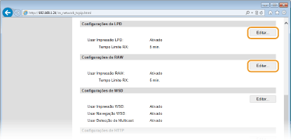 Clique em [Editar] em [Configurações de LPD] ou [Configurações de RAW].