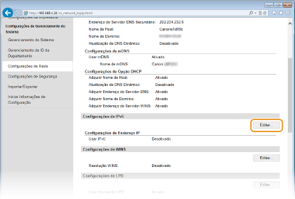 Clique em [Editar] em [Configurações de IPv6].