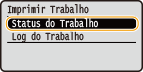 Selecione <Status do Trabalho> e prima