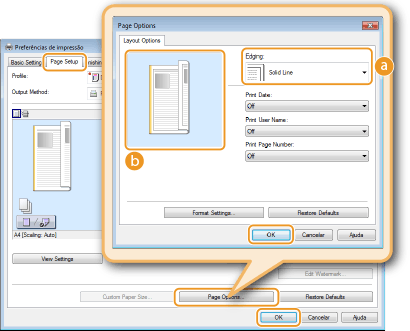 Pode adicionar limites, como linhas tracejadas ou linhas duplas, às margens das impressões.