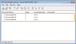 Os documentos são adicionados ao Canon PageComposer.