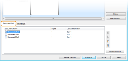 Clique no separador [Document List] (Lista de documentos) para ver os documentos adicionados nos passos 1 a 4. Pode remover documentos selecionando-os na lista e clicando em [Delete from List] (Apagar da lista).