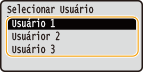 Se estiverem documentos protegidos de dois ou mais utilizadores guardados na memória, o ecrã <Selecionar Usuário> aparece antes do ecrã <Selecionar Arquivo>. Selecione o seu nome de utilizador e prima