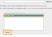 Introduza o endereço IP (ou o intervalo de endereços IP) na caixa de texto [Endereço a ser Registrado] e clique em [Adicionar].