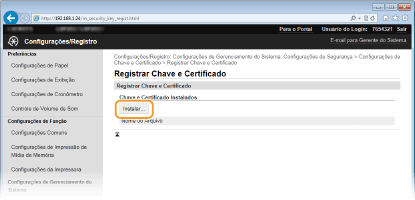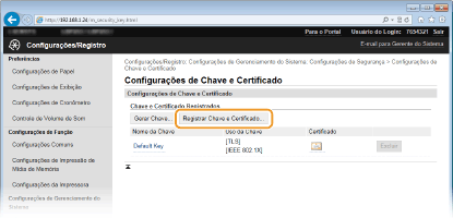 Clique em [Configurações de Chave e Certificado] para instalar um par de chaves ou [Configurações de Certificado CA] para instalar um certificado AC.