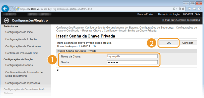 [Configurações de Chave e Certificado] ou [Configurações de Certificado CA].