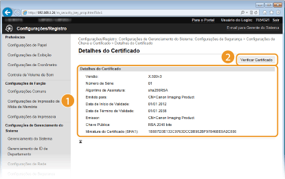 Verifique os detalhes do certificado e clique em [Verificar Certificado].