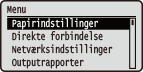 , vises skærmen <Menu>. På denne skærm kan du begynde at angive generelle maskinindstillinger som f.eks. <Præferencer> eller <Timerindstillinger> samt de fleste indstillinger for udskrivning, som f.eks. papirindstillinger og densitetsjustering.