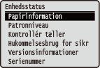 Viser maskinens status, f.eks. mængden af papir eller den resterende mængde toner i tonerpatronen.