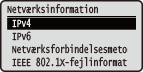 Viser netværksindstillinger som f.eks. maskinens IP-adresse og status såsom tilstanden for trådløs LAN-kommunikation.