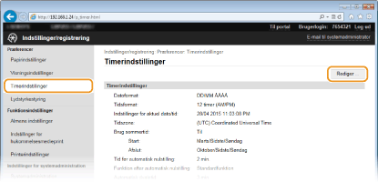 Du kan konfigurere en indstilling, så der slukkes automatisk for strømmen på et bestemt tidspunkt på hver af ugens dage. Derved undgår du unødvendigt strømforbrug, hvis der ikke bliver slukket for strømmen. Som standard er denne funktion deaktiveret.