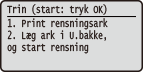 Snavs kan klæbe til fikseringsenhederne inden i maskinen og være skyld i, at der kommer sorte striber på udskrifterne. Følg denne procedure for at rengøre fikseringsenheden. Vær opmærksom på, at du ikke kan rengøre fikseringsenheden, når der er dokumenter, der venter på at blive udskrevet i maskinen. Du skal bruge almindeligt A4-papir eller papir i Letter-format for at rengøre fikseringsenheden. Læg papiret i papirskuffen eller universalbakken (