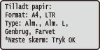 Kontroller, at papirformatet og -typen, der vises på skærmen, er lagt i maskinen, og tryk på