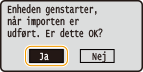 Kontrollér meddelelsen, vælg <Ja> og tryk på