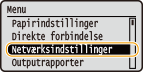 Alle indstillinger om netværket vises med korte beskrivelser. Standardindstillingerne er angivet med en daggert (