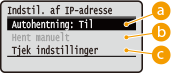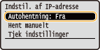 Kontroller, at <Auto-IP> er indstillet til <Til>.