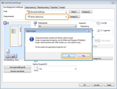 Vælg [Sikret udskrivning] i [Outputmetode].