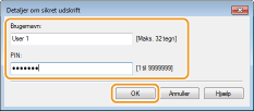 Angiv brugernavn for [Brugernavn] og PIN for [PIN], og klik på [OK].