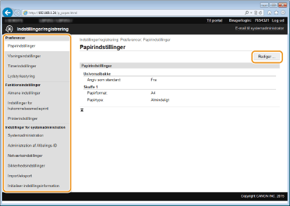 Papirindstillinger