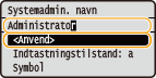 Angiv et systemadministratornavn på op til 32 tegn, og tryk på <Anvend>, og tryk på