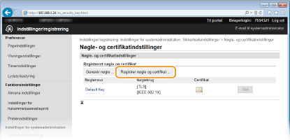 Klik på [Registrer nøgle og certifikat] eller [Registrer CA-certifikat].